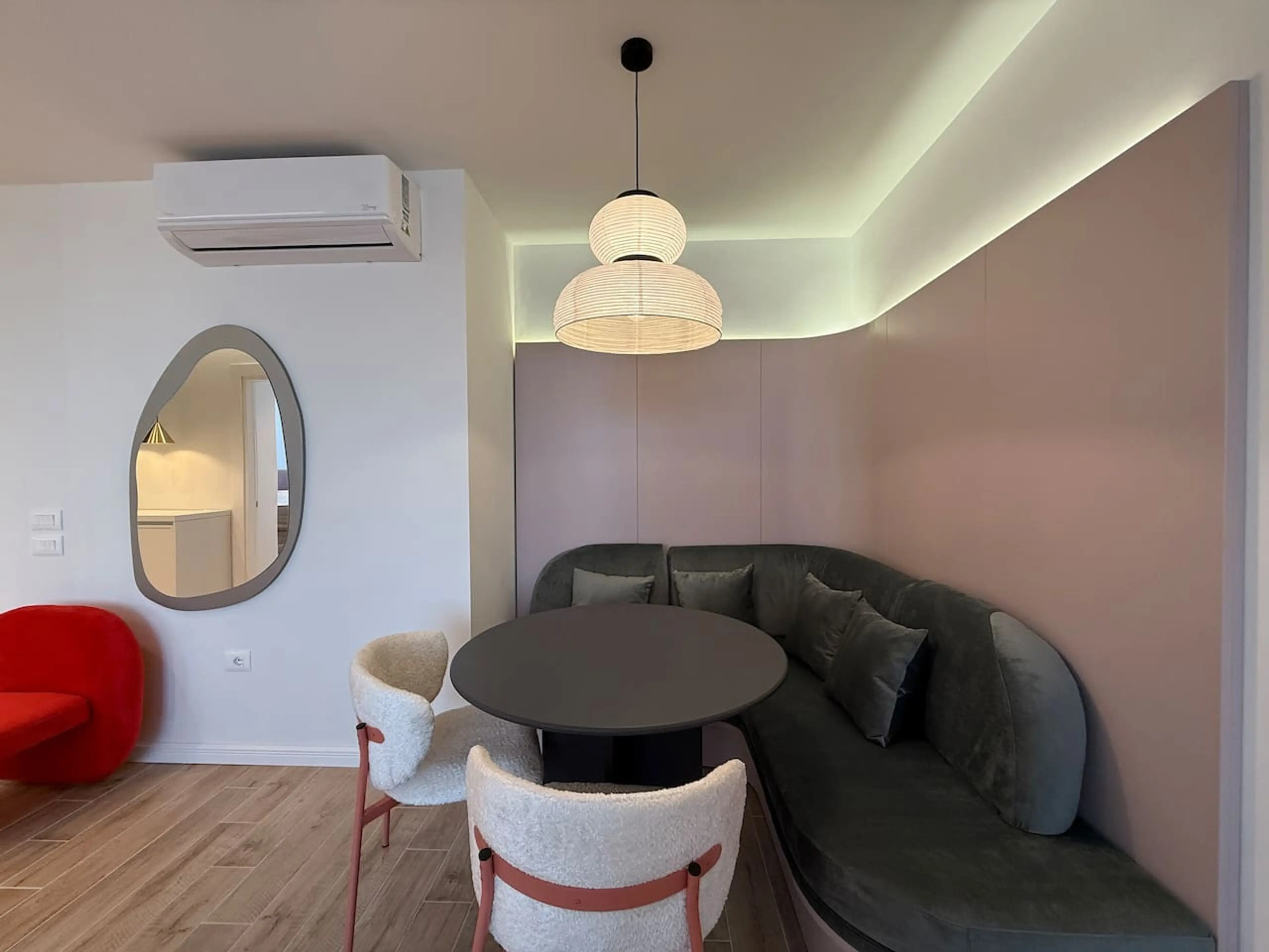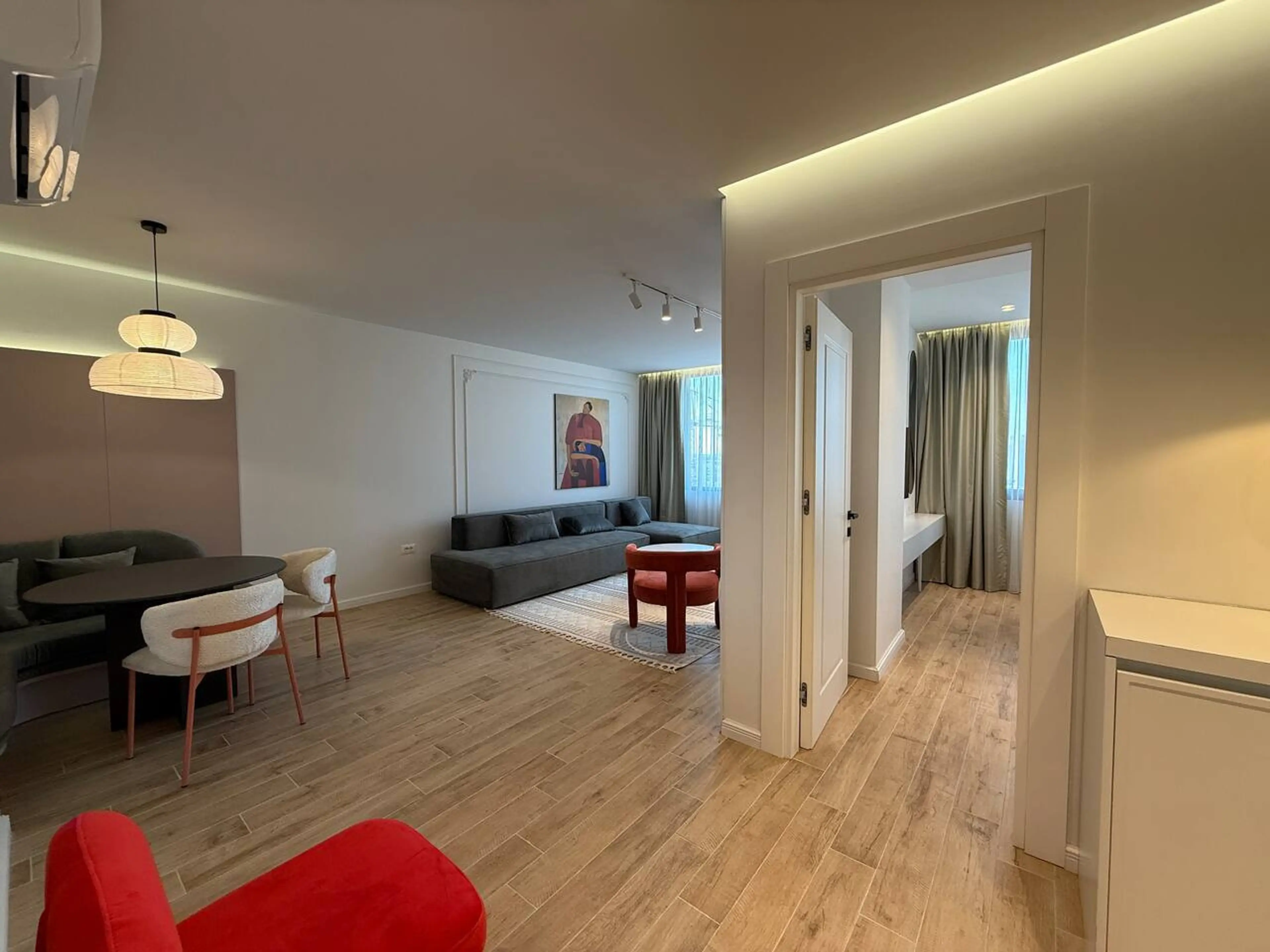 DISCOUNTS: 10% off 7+ nights 15% off 28+ nights ☀️ Steps to Rinia Park ☀️ 1 min walk to iconic Shallvaret buildings ☀️ 3 min walk to Skanderbeg Square & Clock Tower ☀️ Conad Supermarket in the building ☀️ Surrounded by top restaurants, cafés & bars (Shallvare Grill, Sushigrill, Pata Negra, Taiwan B...
